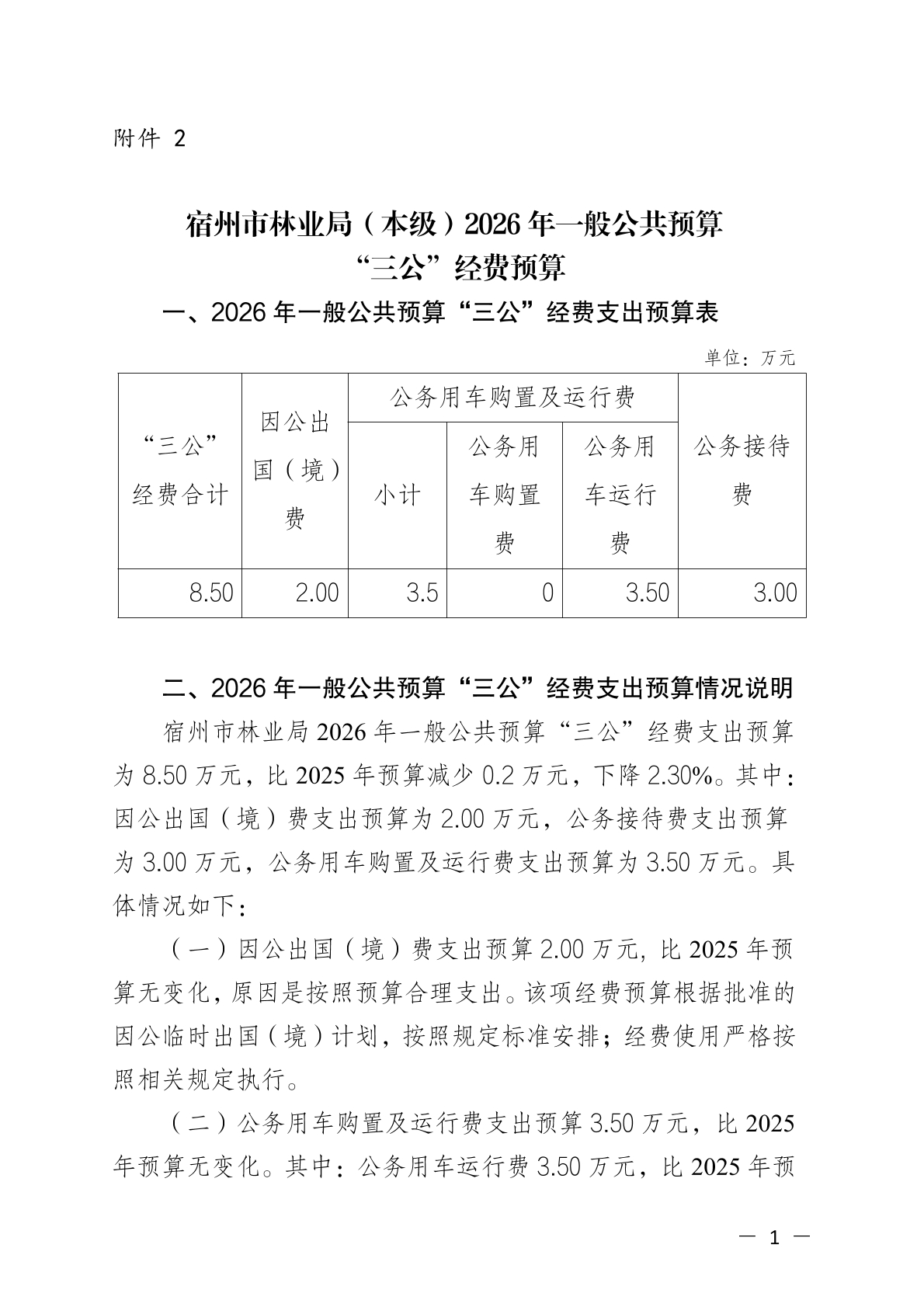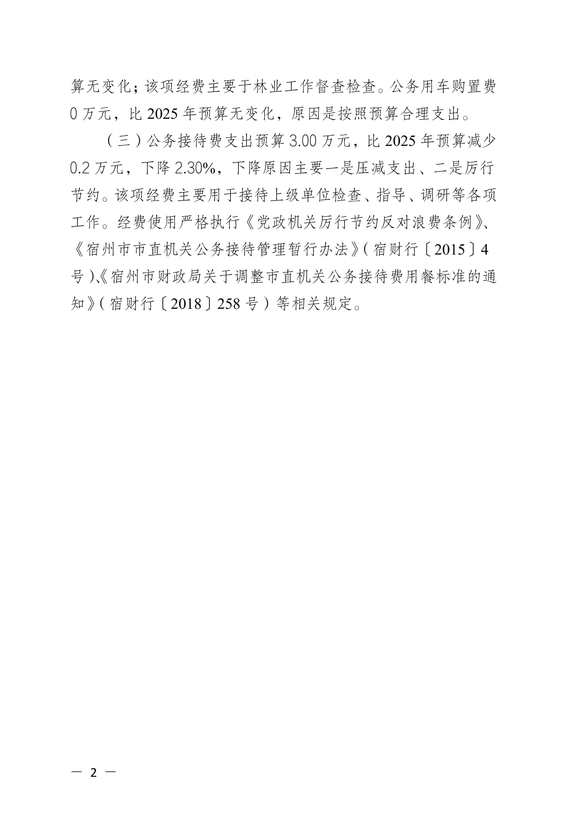 宿州市林业局(本级)2026年一般公共预算“三公”经费预算