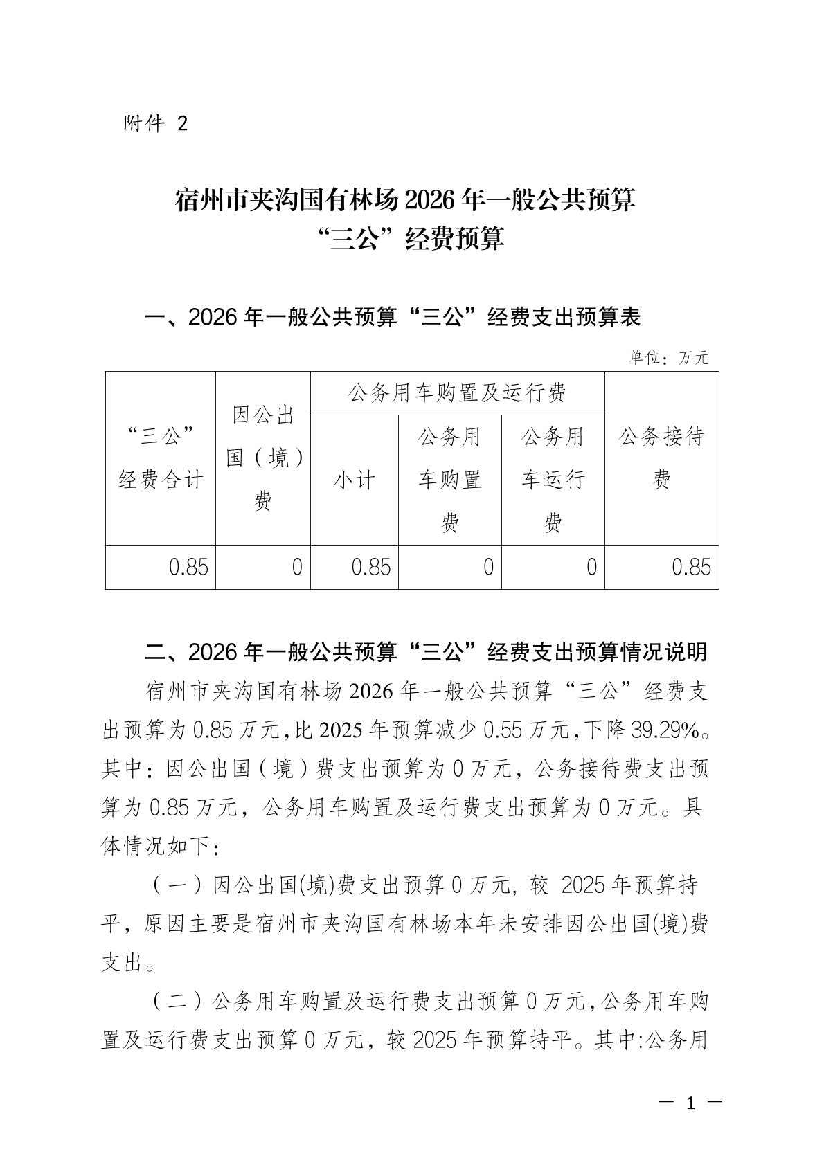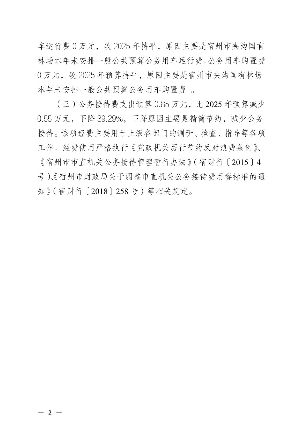 宿州市夹沟国有林场2026年一般公共预算“三公”经费预算