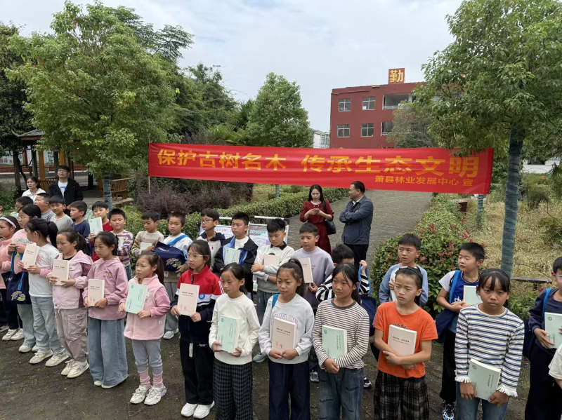 针对不同场所受众需求,活动定制差异化内容,确保宣传“精准滴灌”。萧县林业发展中心联合宿州市林业局在白土小学的校园场景中,通过开展“古树故事课堂”,用萧县本地古树的生动案例,讲解其生态价值与文化意义;学生们通过“宣读倡议书”,以“小小护树员”身份承诺践行保护行动,并主动向家人传递理念,实现“教育一个学生,带动一个家庭”的辐射效应。