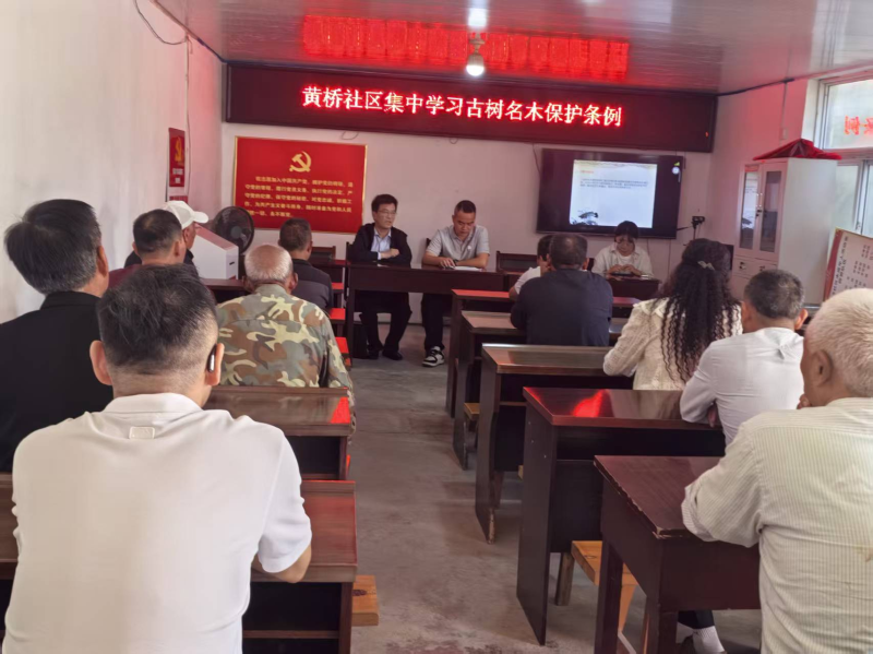 与此同时,萧县林业发展中心分别联合龙城镇黄桥社区、官桥镇政府,在两大场所同步推进宣传:在官桥小学,通过案例教学与实践指导,让学生掌握基础古树保护知识;在黄桥社区,则通过发放宣传手册、召开保护条例学习会,结合社区周边古树现状讲解巡查要点,鼓励居民成为古树“民间监督员”,共同参与社区生态资源守护。